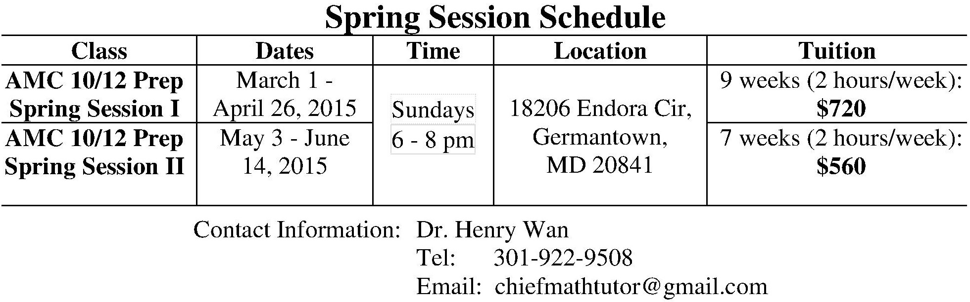 We are only one in the Washington DC metropolitan area to offer elementary, middle, and high-school level competition math courses. Our tutoring model is very unique. We ask that all students complete all the required problems at home, and then email their work to us before come to the class. We will carefully review and check the students’ work. Based on their work, we can detect what are the student’s specific weaknesses and use those problems in class to teach the students all the tricks, shortcuts, strategies, and tactics for taking the contest. The entire two hours are used for instructional teaching only. We firmly believe that learning is extremely important, and that a student should not waste time doing problems with our supervision if they can do those problems at home. So our 2-hour session is equivalent to a regular 4-hour session, and thus our hourly rate is equivalent to $20 per hour.