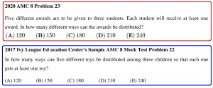 It is extremely surprising that two counting problems on the 2020 AMC 8 are the exact same as two problems on our sample 2017 AMC 8 mock test, as shown at:
