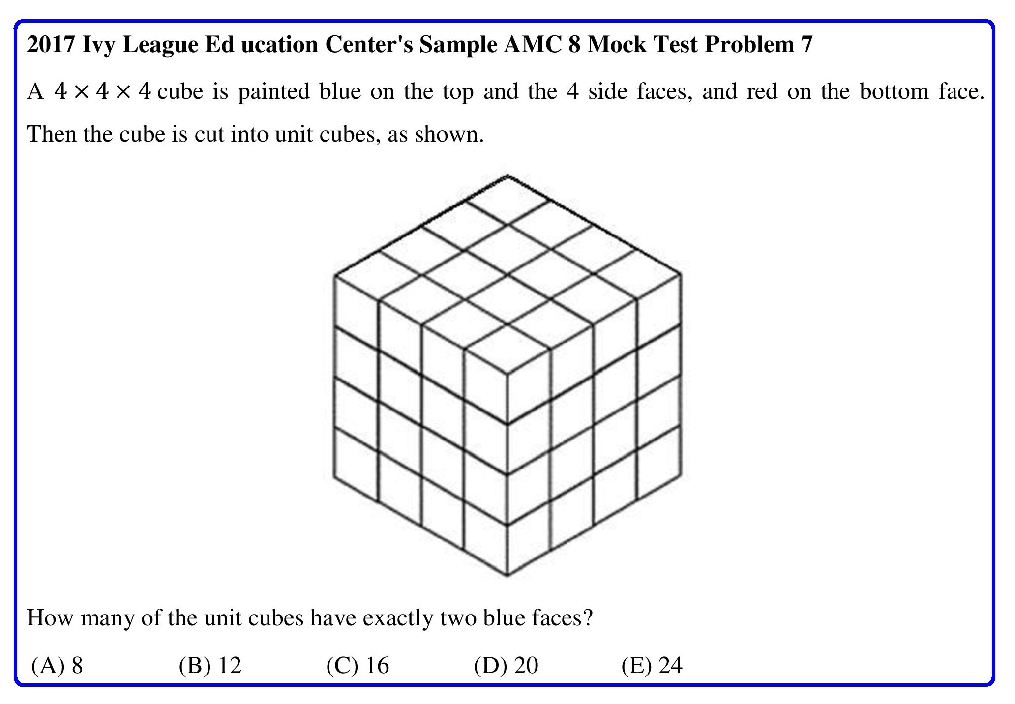 2020 AMC 8 Problem 23 is completely identical to 2017 Ivy League Education Center’s Sample AMC 8 Mock Test Problem 22.